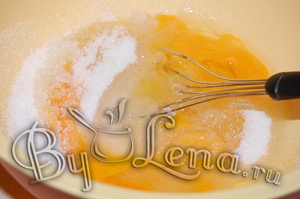 1Перемешайте венчиком яйца с сахаром и солью.
