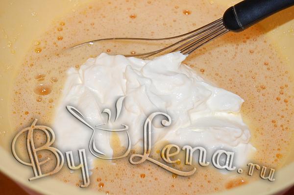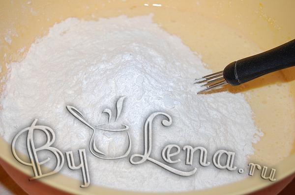 3В конце добавить муку и разрыхлитель, перемешать хорошо чтобы не было комочков.