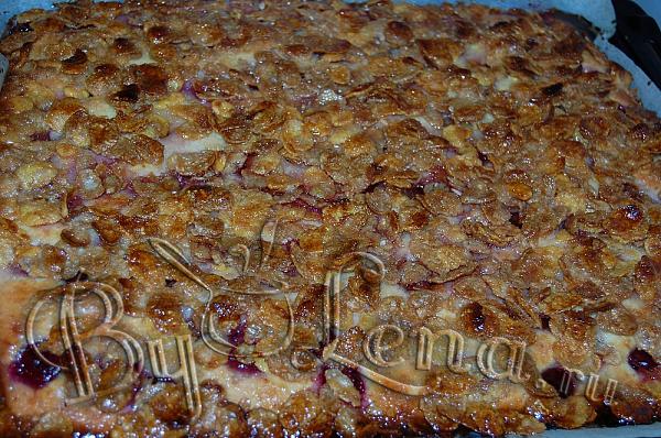 Очень интересный и вкусный вишенвый пирог благодаря верхнему слою из глазированных кукурузных хлопьев. Вкусное тесто, легкая кислинка вишни, сливочный запах и хрустящая корочка - никого не оставят равнодушными, даже самых капризных едоков.